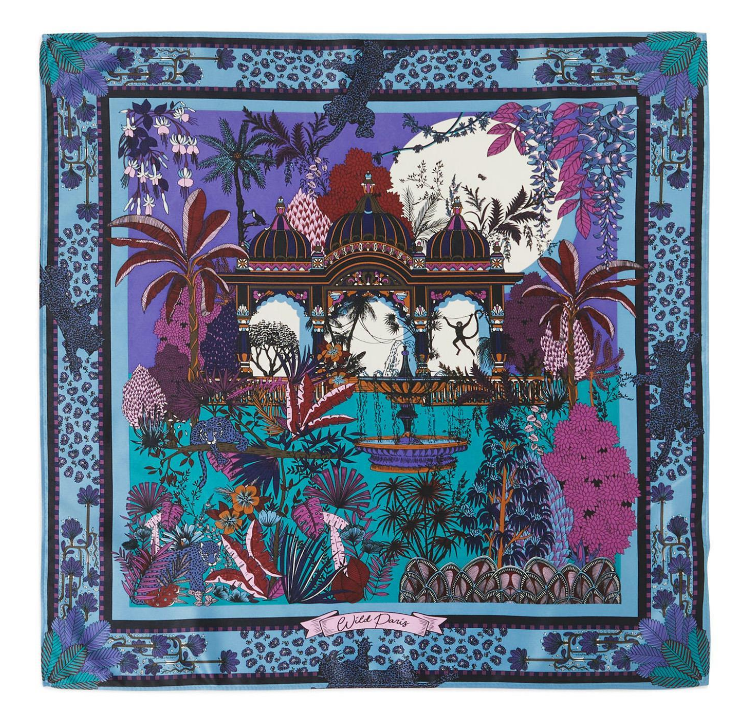 The Amber Palace Print Mini Square Scarf by Wild Paris is a stunning blend of vintage charm and modern sustainability. Featuring an intricate palace-inspired print in cool blue tones, this scarf adds an elegant touch to any outfit. Made from recycled polyester, it's both stylish and eco-conscious. Its mini square shape allows for versatile styling-wear it around your neck, tie it to a bag, or style it in your hair for a chic accent.