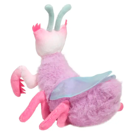 One glance at Ophelia the plush Orchid Mantis and her glamorous and eccentric personality will be obvious! This captivating creature features appealing shades of pink that allow her to blend in amongst the flowers. Whimsical eyelash accents and a droll, little smile add to the alluring appearance of our depiction of this exotic species of Praying Mantis. A pair of shimmery, transparent wings rest across Ophelia’s lavender colored body. With an alert pose and charismatic presence, Ophelia is a unique stuffed animal who’ll bring a smile to the face of those who have the good fortune of crossing her path!