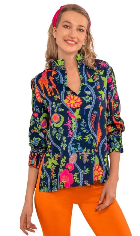 Gretchen Scott: Ruffleneck Tunic - Jungle Symphony