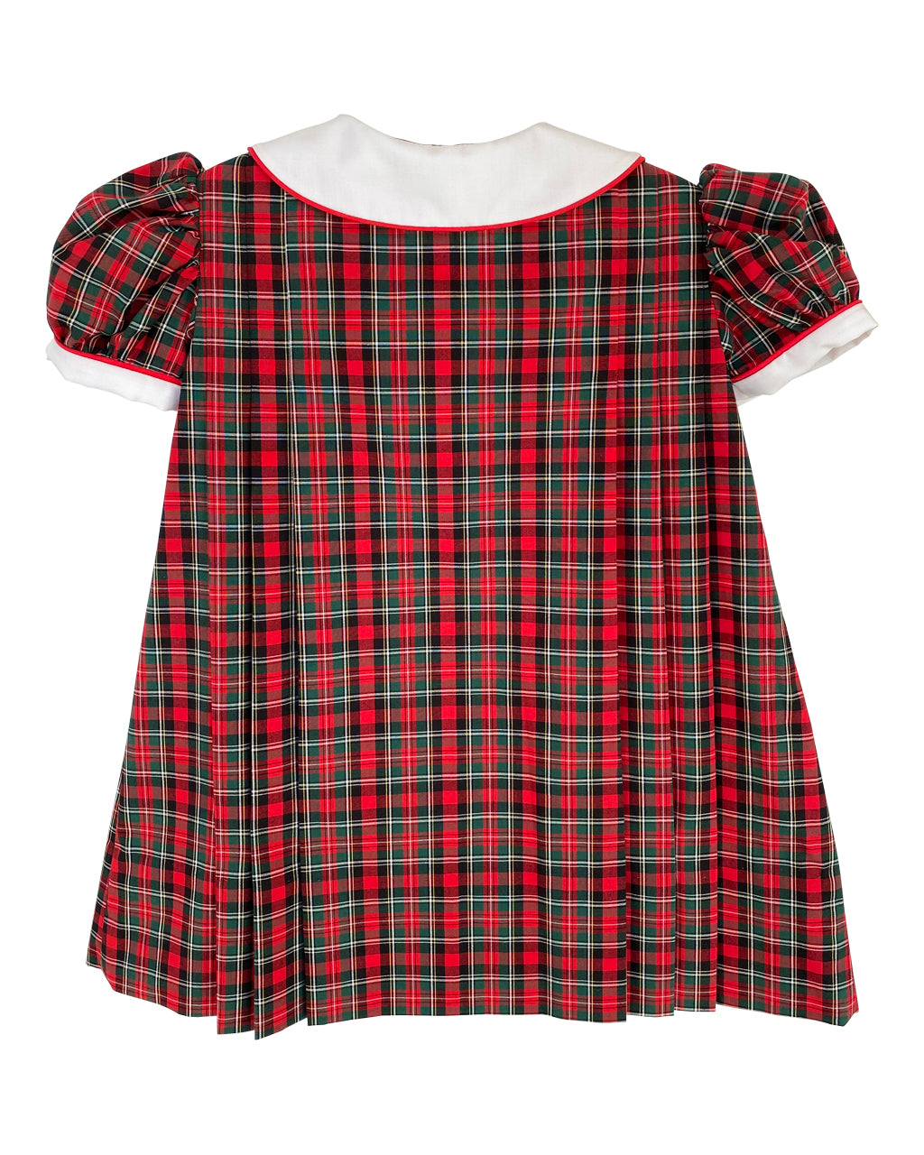 - This dress is made with red and green plaid fabric, our classic red cherries and a white collar.