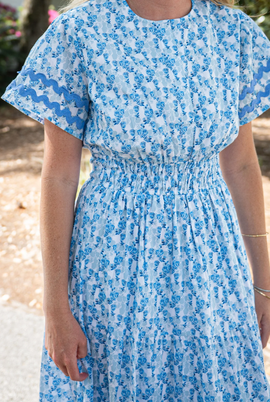 A new fan favorite that is ready for spring! Need to refresh your wardrobe essentials? Try this printed midi dress for warm weather adventures. Easy to dress up or down, we'll be pairing this one with our favorite wedges for elevated evenings of sipping rosé poolside. The coordinating ric-rac trims elevates this piece making it a must-have for this season and beyond.