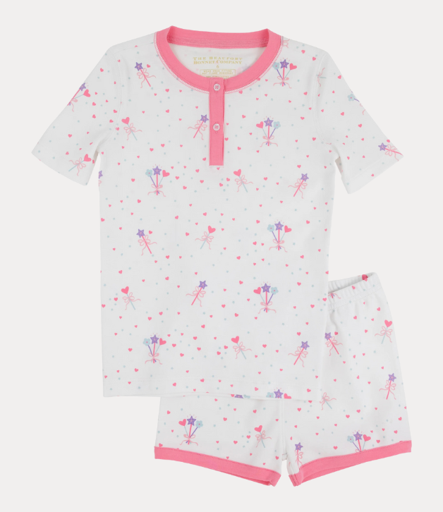 The softest and sweetest pajamas in the whole wide world just got even better! Our Sara Jane's Short Set featuring Fairy Dust Sprinkles with Romany Rose trim are what sweet dreams are made of!