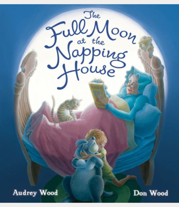 In the wide-awake bed in the full-moon house, everyone is restless! The moonlight is pouring in and no one can get to sleep: not Granny, her grandchild, the dog, the cat, or even a mouse. It's not until a tiny musical visitor offers up a soothing song does the menagerie settle down, and finally everyone is off to dreamland. With a patterned text and stunning paintings, Audrey and Don Wood reveal once again why they are picture book creators of the highest order. The Full Moon at the Napping House, the dreamy companion to their classic The Napping House, is now in a cozy padded board book edition—perfect for sharing at bedtime or anytime.