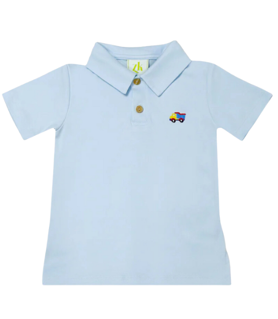 Ian Polo with Construction Truck on Light Blue Knit by Zuccini Kids